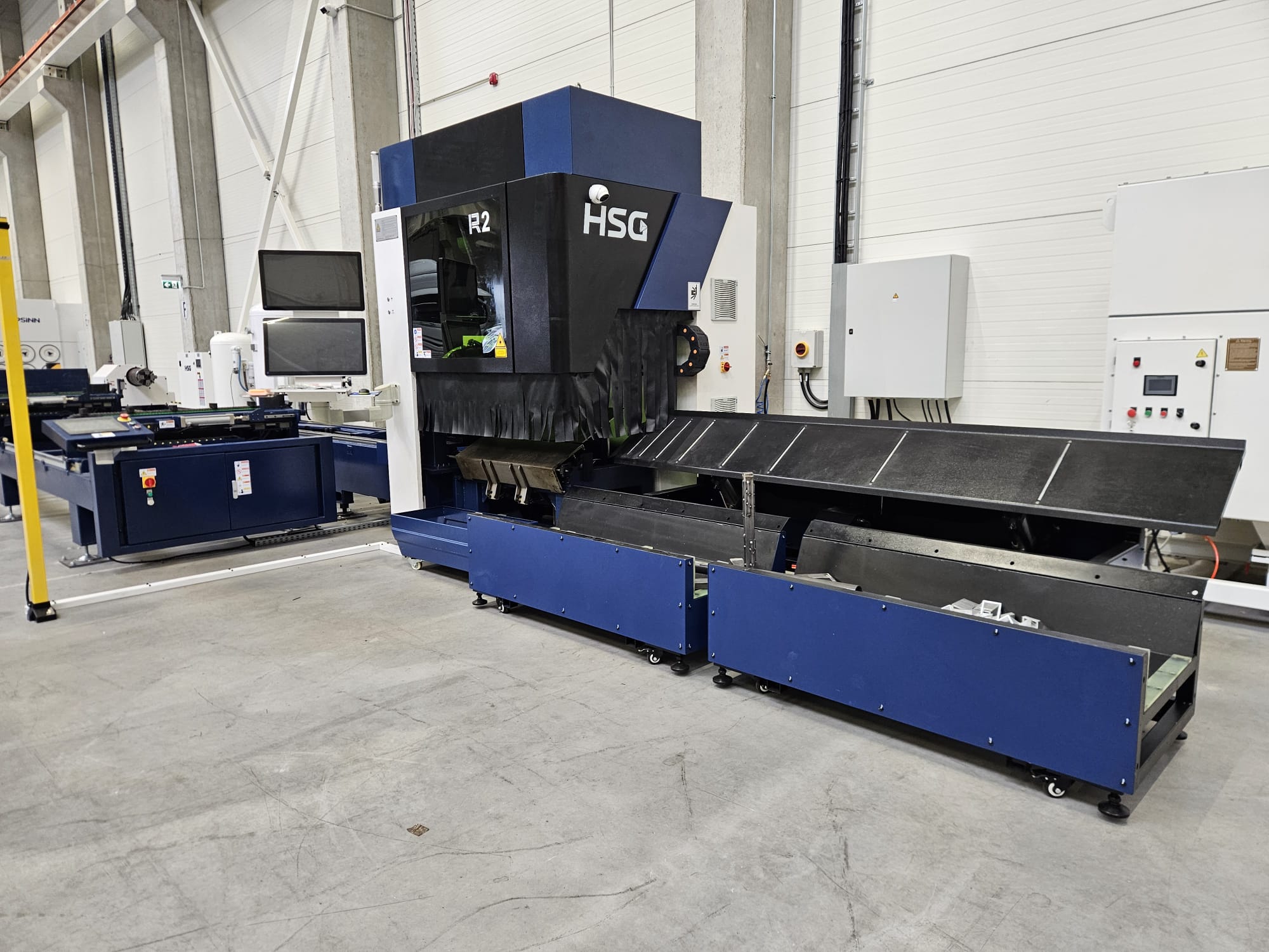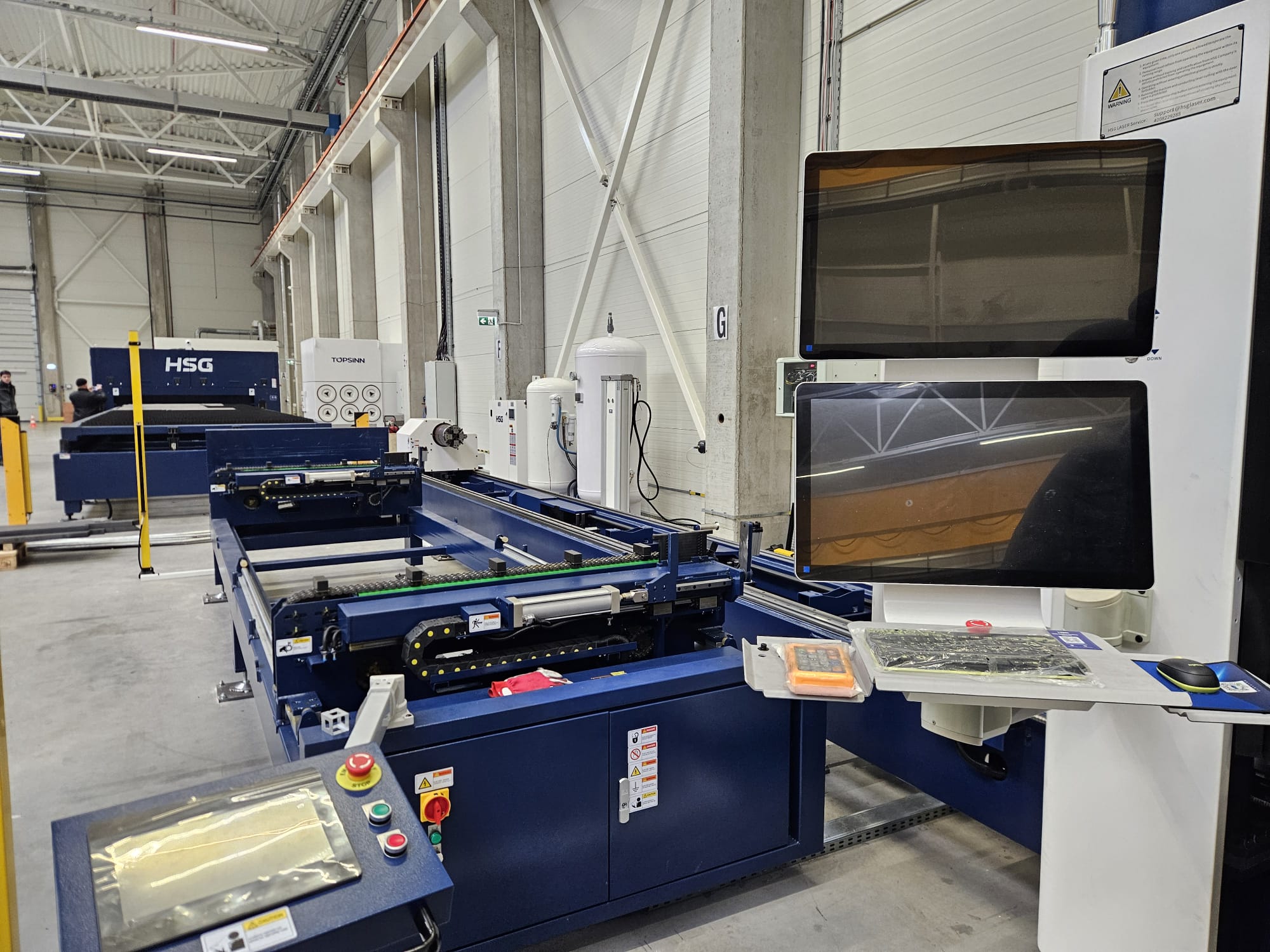 Sheet laser model G12025H 20kW and tube laser model R2S 6kW with a conveyor belt for feeding blanks.